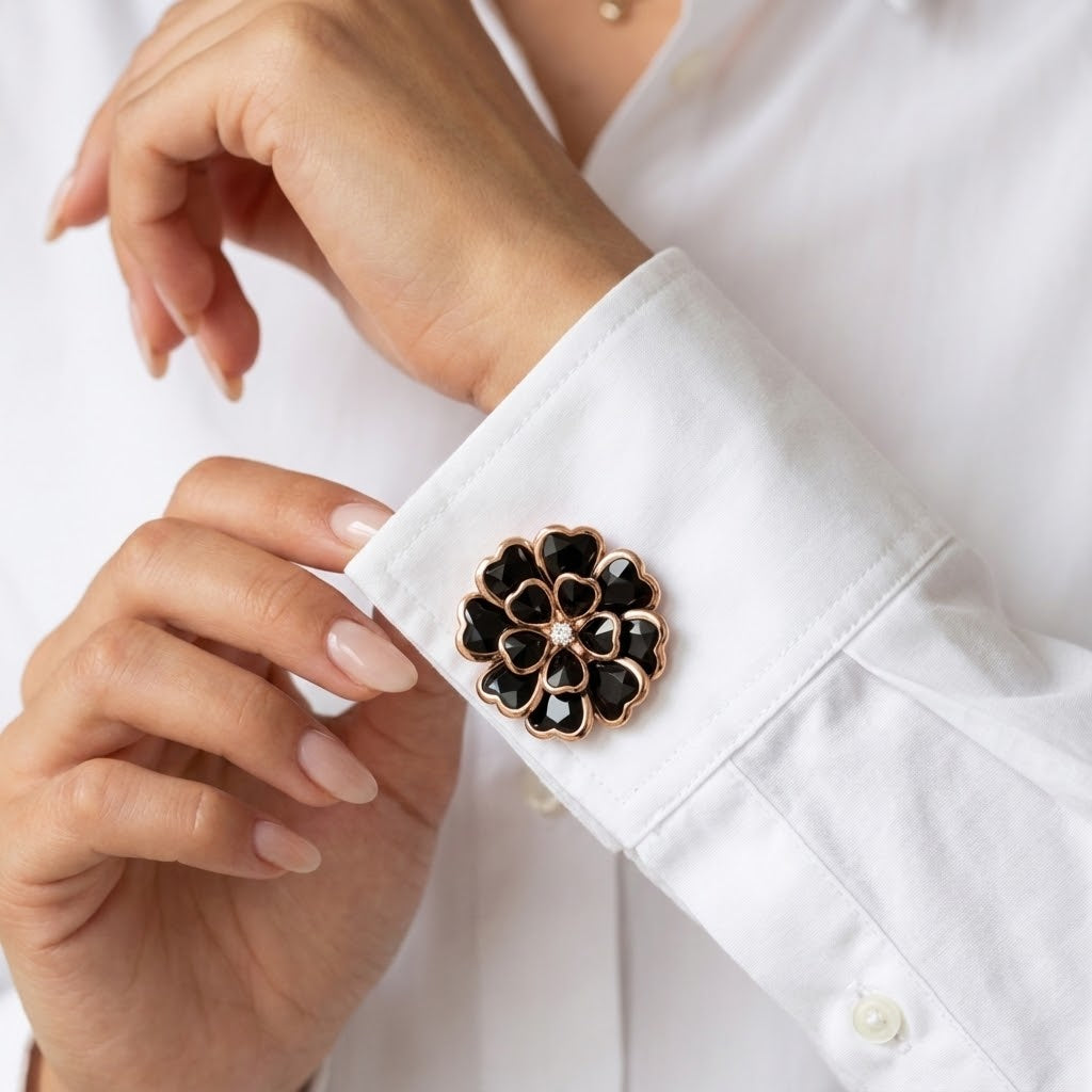 Snap them over your existing buttons to instantly transform a plain blouse or shirt into a unique, polished look. Reusable, lightweight, and designed to stand out.