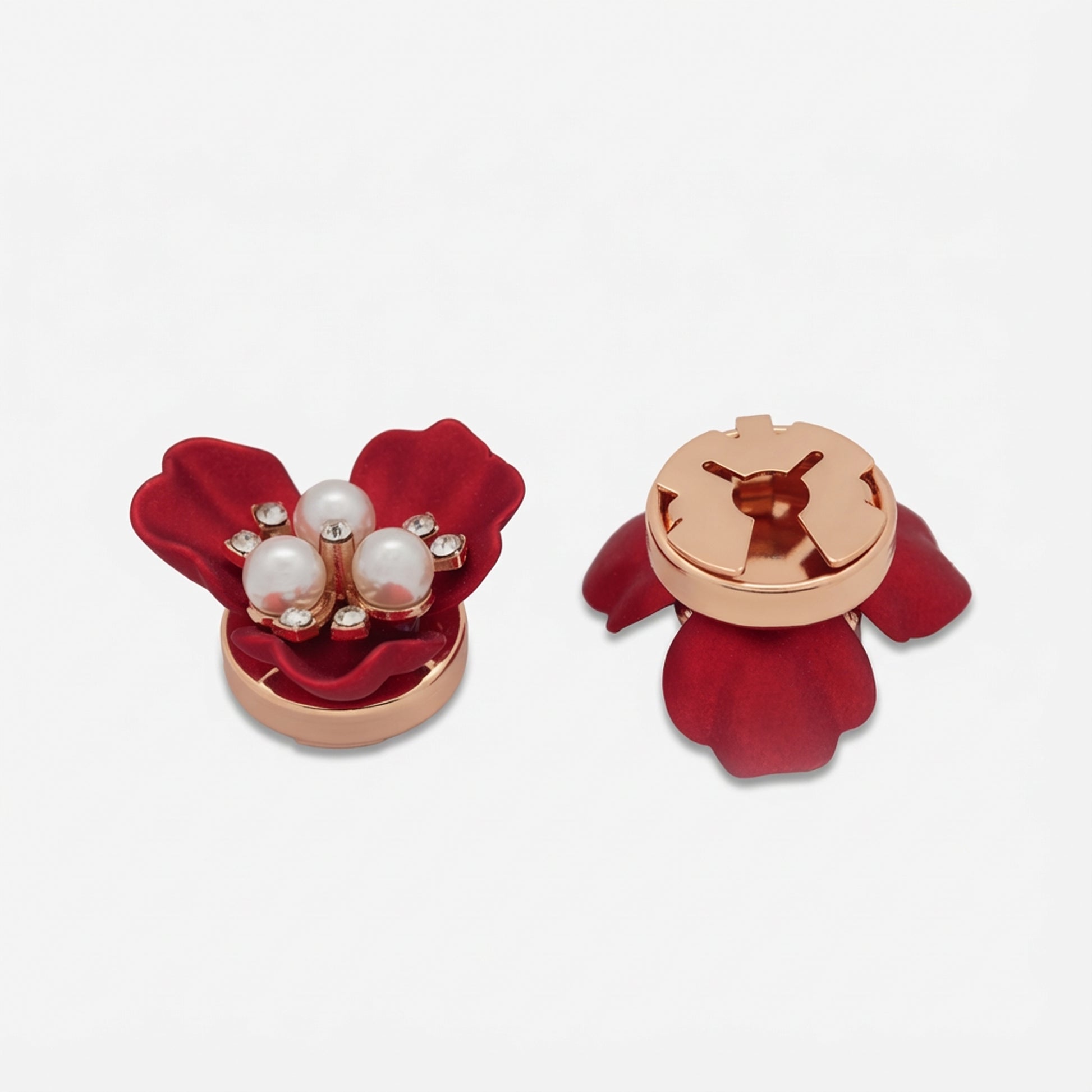 Snap it over your existing button to instantly elevate a simple blouse or shirt with layered petals and delicate pearl details. Reusable, lightweight, and thoughtfully designed to catch the light beautifully.